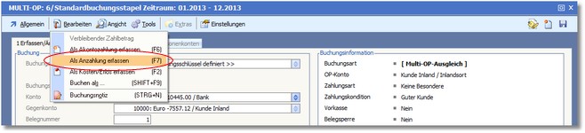 9. Nun können Sie mit [F7] eine neue Anzahlung erfassen.