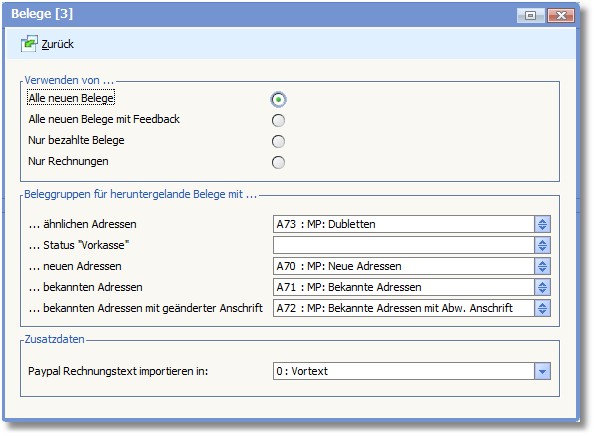 Legen Sie in diesem Bereich fest, welche heruntergeladenen Belege zur weiteren Verarbeitung verwendet werden sollen. Hierbei stehen folgende Optionen zur Auswahl: