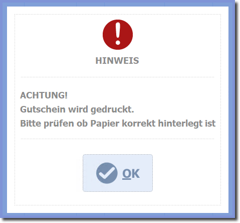 So erhält der Kassierer noch eine Info und kann sich vergewissern, dass das richtige Papier eingelegt ist.