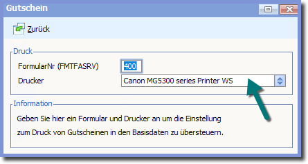 << Hier KLicken um eine Inhaltsübersicht anzuzeigen >> Navigation: Kassensystem > Bedienung der Kasse (Anwenderinformationen) > Spezielle Vorgänge an der Kasse > Gutscheine > Einstellungen zum Gutscheindruck |