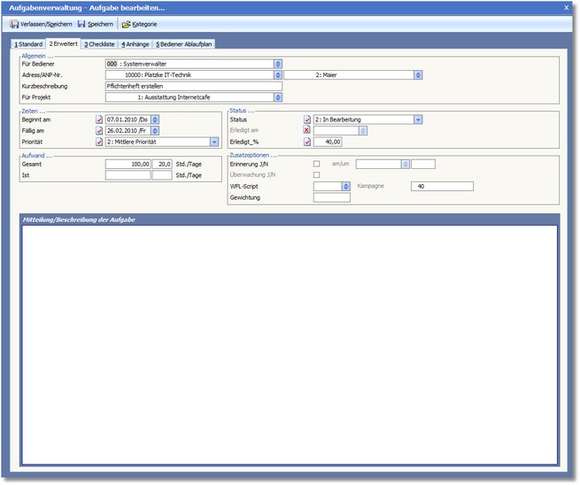 Das Programm öffnet die Dialogmaske "Aufgabenverwaltung - Aufgabe bearbeiten...".