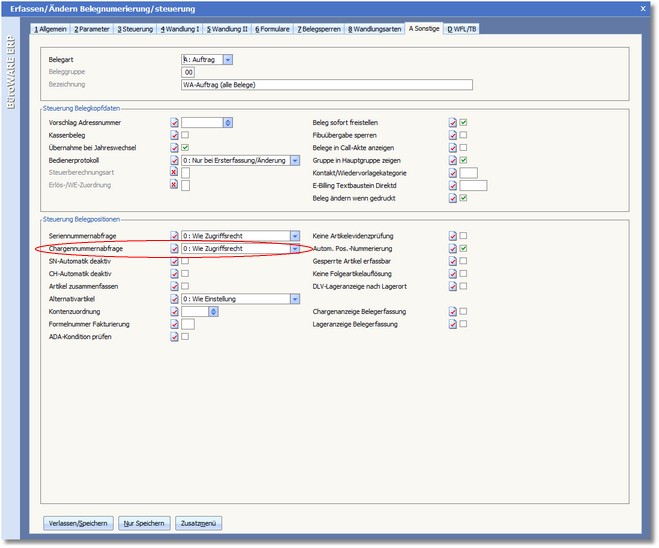 In welchen Belegen eine Chargenabfrage für Chargenartikel erfolgen soll, können Sie innerhalb der Beleggruppen einstellen.
