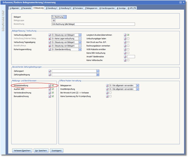 6. Aktivieren Sie den Status des Feldes INTRASTATMELDUNG.