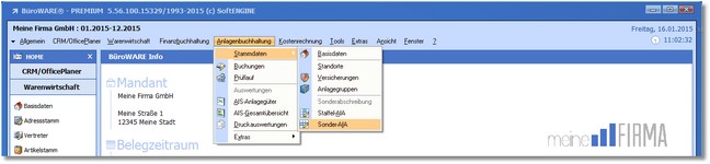 1. Klicken Sie mit der Maus im Hauptmenü auf "Anlagenbuchhaltung > Stammdaten > Sonder-AFA".