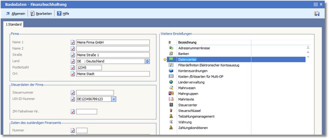 Die Basisdaten der Finanzbuchhaltung werden geöffnet.