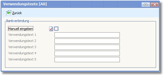 << Hier KLicken um eine Inhaltsübersicht anzuzeigen >> Navigation: Finanzbuchhaltung > Laufende Vorgänge > Zahlungsverkehr > Zahlungsausgang > Manuelle Zahlungen > Positionserfassung Zahlungsausgang > Positionserfassung Zahlungsausgang - Menü > Verwendungstexte |