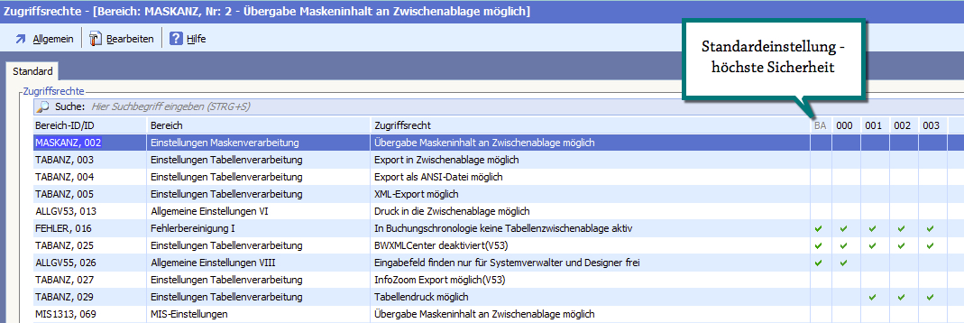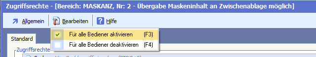 Über das Menü „Bearbeiten“ können für alle Benutzer die Rechte ein- oder ausgeschalten werden.