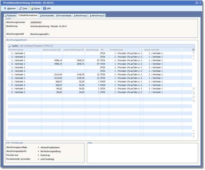 << Hier KLicken um eine Inhaltsübersicht anzuzeigen >> Navigation: Warenwirtschaft > Stammdaten > Vertreter > Vertreterstamm - Menü > Abrechnung > Provisionsabrechnungen erstellen > Die Karteikarte "Detailinformation" |