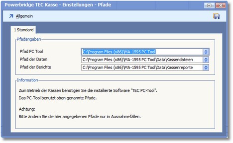 Die TEC Kasseneinrichtung wird mit dem gewünschten Einstellungsdialog geöffnet.